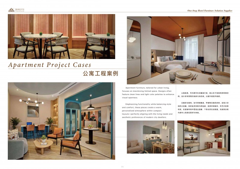 江西适意家具有限公司座落于中国中部家具产业基地的赣州南康,地址位于龙岭镇家具产业园中,占地面积近百亩,员工200多人的大型家具集团,并致力于成为南康家具产业的龙头标杆企业。 适意家具产品包括家具系列,软装系列和其他配套三大产品系列,为酒店家具装修提供从整体到细节的一站式服务。是一家专业生产、设计星级酒店、别墅、公寓家具配套工程的企业。从前期策划,风格定位,设计生产到工程实施,售后服务的全方位整体家具配套解决方案的家具制造商。 适意家具所有出厂的产品,全部采用先进的家具生产流水线生产。生产流程按照广东质量体系认证机构:ISO9001:2008版的质量管理模式生产,并符合环境管理体系GB/T24001-2004idt ISO14001:2004标准。 适意家具产品用料全部采用一流的材料设计,包括欧洲棒木、非洲少比利木、加拿大枫木、黑胡桃木、缅甸樱桃木、缅甸柚木、红影木等高档次木料;采用品质极好的天然木皮饰面,令生活更接近大自然。 多年来,通过适意家具人不断地努力,以真诚与热心赢得了各界对适意家具的关注和厚爱,从而才取得今天这个令人骄傲的成绩,荣获了良好的声誉。