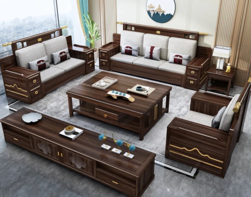 简森新中式乌金木系列、玄关、 罗汉拉床、酒柜、岩板跳台