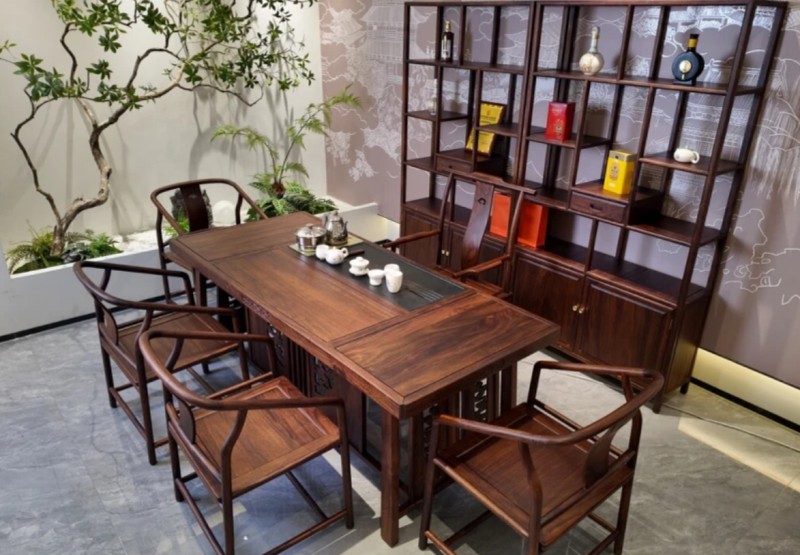 昌龙禾运国潮新中式乌金木家具,新中式乌金木全屋定制厂家,研山茗茶空间家具招商