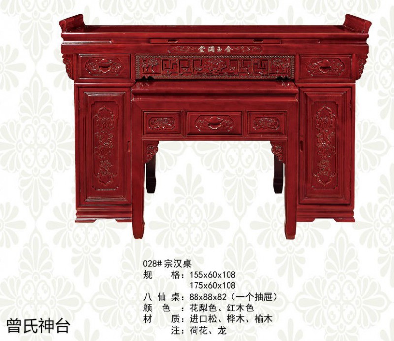 曾氏神台家具厂是一家专业生产和销售佛家具的厂家,包括神台、佛台供桌、神楼、佛柜、书法桌等。