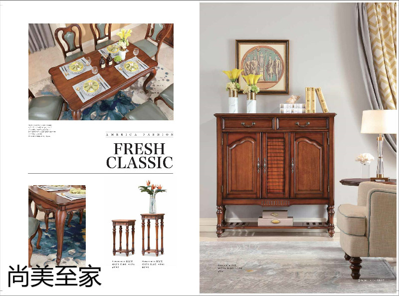 公司产品线以现代美式和简约美式为主,现有国内实木品牌“尚美至家”系列,涵盖:卧房、客厅、餐厅、书房、起居室等空间家用产品。年产能上亿,既满足了常规家庭需求,又给一些高端群体提供了个性化的服务。尚美至家系列的产品均采用套框工艺制作,材质方面使用的是非洲进口桃花芯材质。喷涂方面采用的是阿克苏油漆涂装。其色彩温煦典雅。尚美至家融合了美式家具的简约元素。