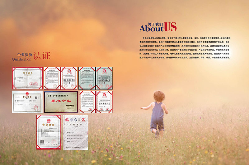 自由松家具有限公司是一家专注于青少年儿童家具研发、设计、生产和销售的青少年儿童家具厂家,致力于让大家能够用上让自己真正喜欢的优质环保家具。是当时中国最早提出儿童家具市场细分概念,以特许专卖模式经营推广的品牌。自由松从组建公司的开始就对产品工艺和材料精益求精,所用材料以达到国际环保为标准,品牌以过硬的品质和公道的价格在业内形成了良好的口碑。自由松同样重视国际市场的开发,产品现已销到欧美、非洲和东南亚等国,并赢得了市场认可和诸多美誉,堪称儿童家具的杰出典范。真材实料才是真诚所在,自由松家具将一如既往致力于青少年儿童家具的创新,倡导健康阳光的生活方式,为打造健康、环保、优质、个性的家具不断进取。