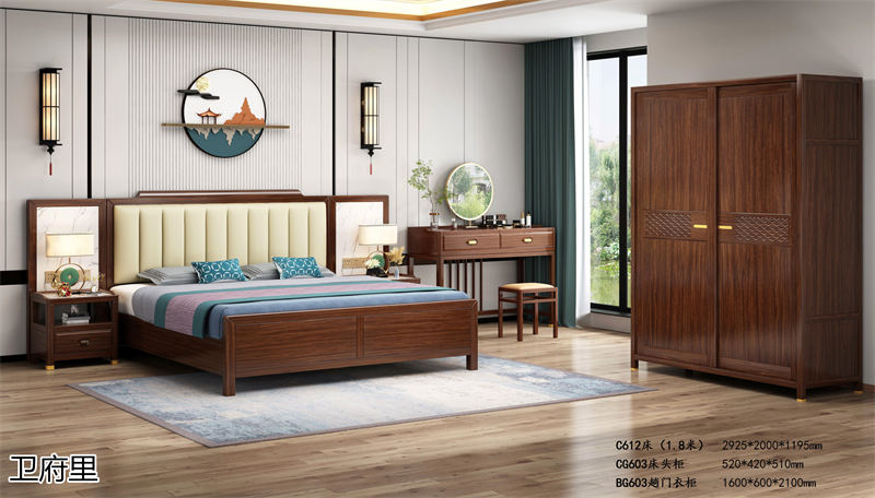 卫府里整体新中式套房家具产品分类分为新中式客厅家具、新中式书房家具,新中式餐厅家具,新中式卧室家具等四大系列。