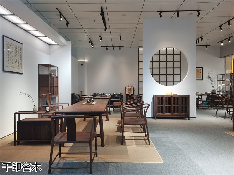 北美黑胡桃木家具,南康黑胡桃木家具,新中式禅意家具,江西高端茶楼、茶室、茶空间、会所家具工程定制,千印名木,黑胡桃木家具生产厂家