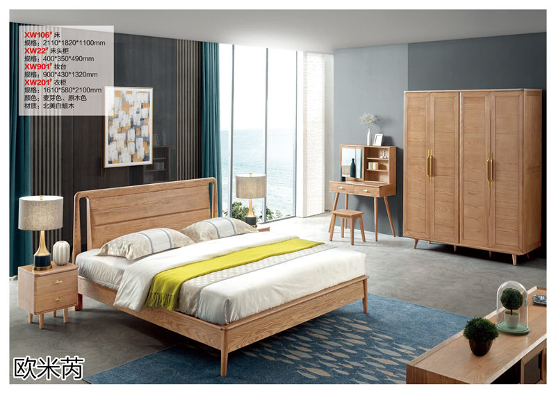现代轻奢风格家具,南康白蜡木家具,江西简约轻奢实木家具招商,麦芽色、原木色北美白蜡木套房,欧米芮家具品牌加盟,翔康家具生产厂家
