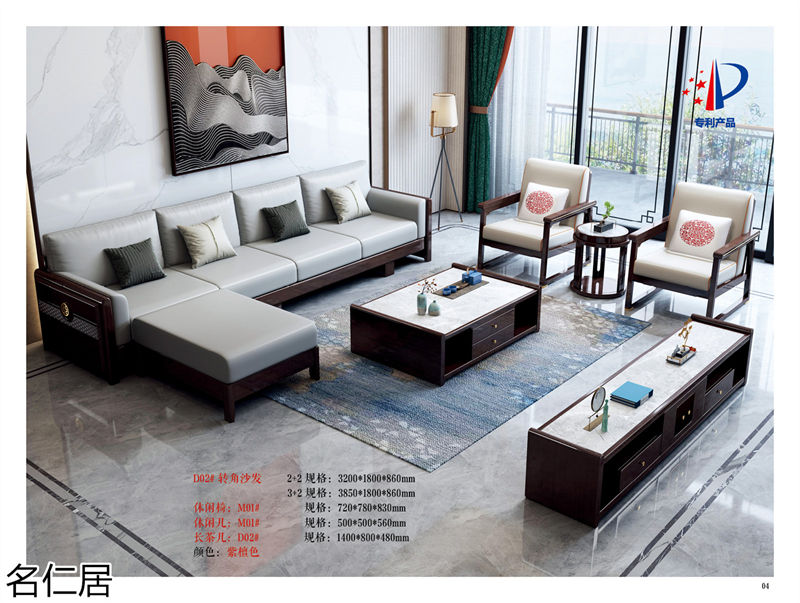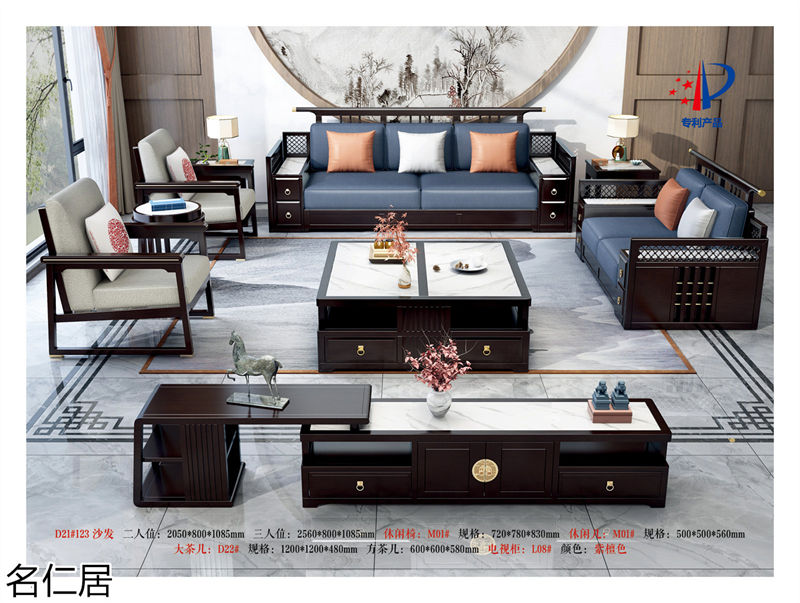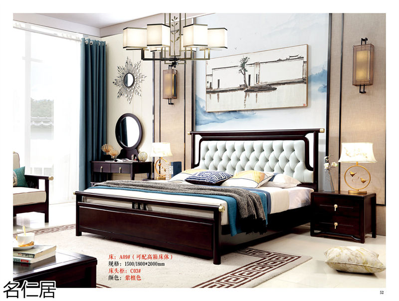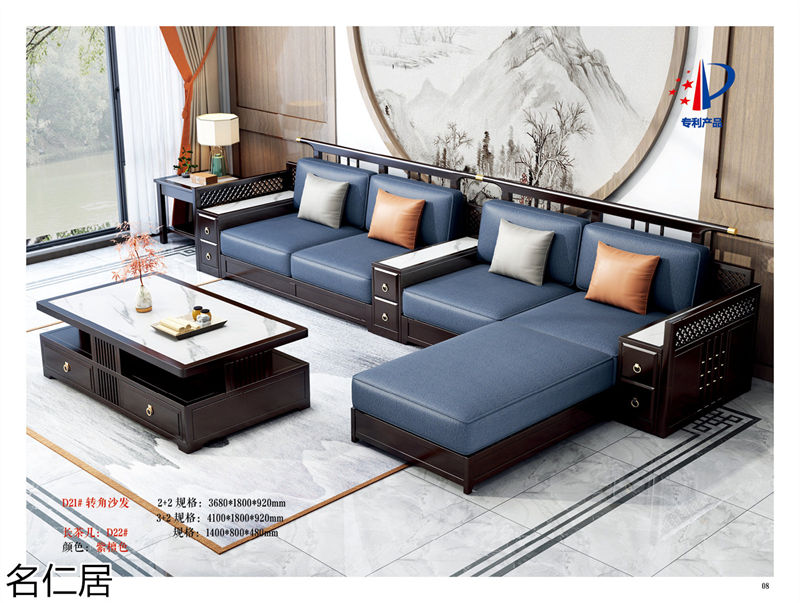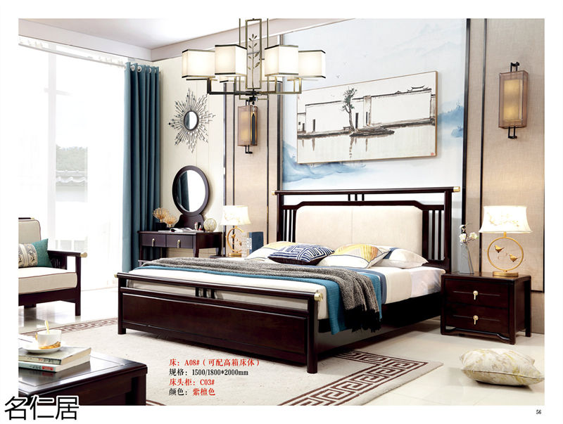 新中式风格家具,南康新中式家具,新中式实木家具加盟,紫檀色新中式沙发、餐桌、床,江西新中式套房家具招商,名仁居家具生产厂家