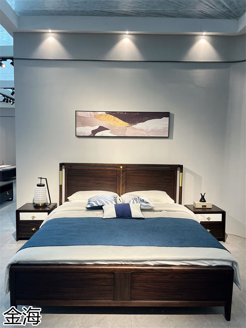 轻奢新中式风格家具,南康黑胡桃家具,新中式实木家具品牌招商,新中式轻奢家具电商供应商,云端轻奢新中式黑胡桃套房,金海家具生产厂家