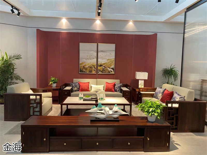 现代雅致新中式风格家具,南康赛油楠木家具,江西非洲黑檀木套房加盟,别墅大平层新中式全屋定制,檀苑新中式家具招商,金海家具生产厂家
