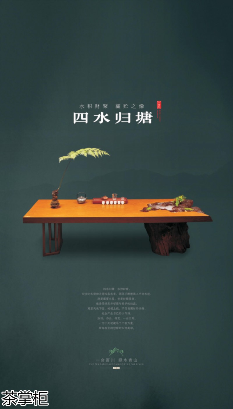 茶掌柜是郑州唐人文化传播有限公司旗下的茶空间品牌,公司以“绿水青山就是金山银山”为创始指导思想,采用高分子碳纤维复合材料取代传统的不可再生的木材,利用先进的航空测绘技术,萃取大美河流中经典的河段,匠心雕琢,一次成型,完美呈现古树名木的自然纹理,每一款都经过工艺美术大师精心设计与雕琢,再由造景师精心布置出千姿百态、栩栩如生的独特自然景观,真实还原了旖旎的风光,醉人的美景,蜿蜒绵亘、云雾缭绕、流水潺潺、摇曳生姿、如诗如画...一步一景一画卷,移步换景画中游...