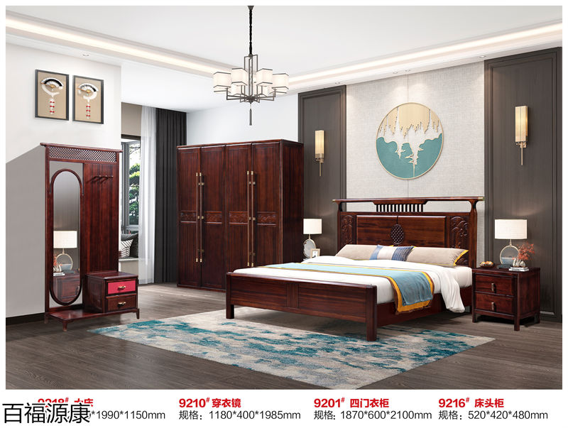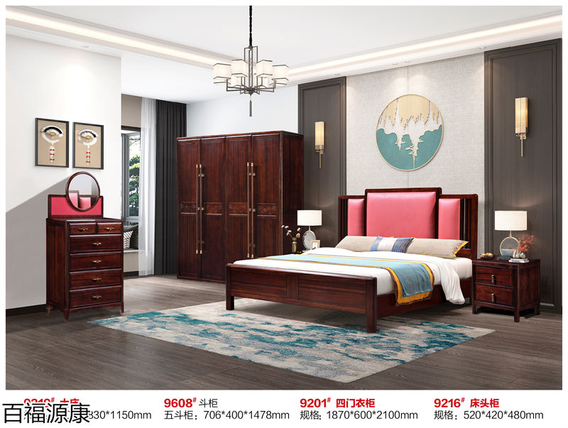 国潮新中式风格家具,南康乌金檀木家具,紫檀色新中式套房招商,雅韵新中式乌金檀木家具,百福源康家具品牌加盟,江西华广家具生产厂家