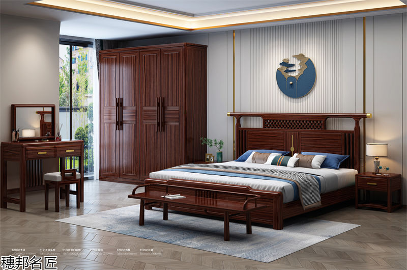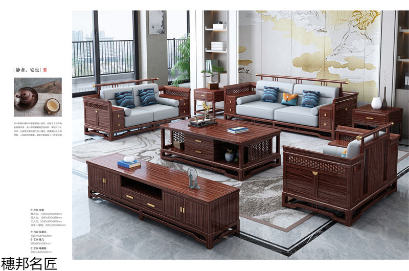 新中式风格家具,南康乌金木家具,新中式乌金木套房家具招商,乌金木沙发、床、餐桌、茶台,穗邦名匠家具品牌加盟,江西穗邦家具生产厂家