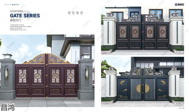 别墅庭院大门,赣州铝艺大门、户外景墙、庭院围栏,江西阳台护栏、锌钢栏杆、楼梯扶手,南康新中式凉亭、阳光房,昌鸿铝艺整体定制厂家