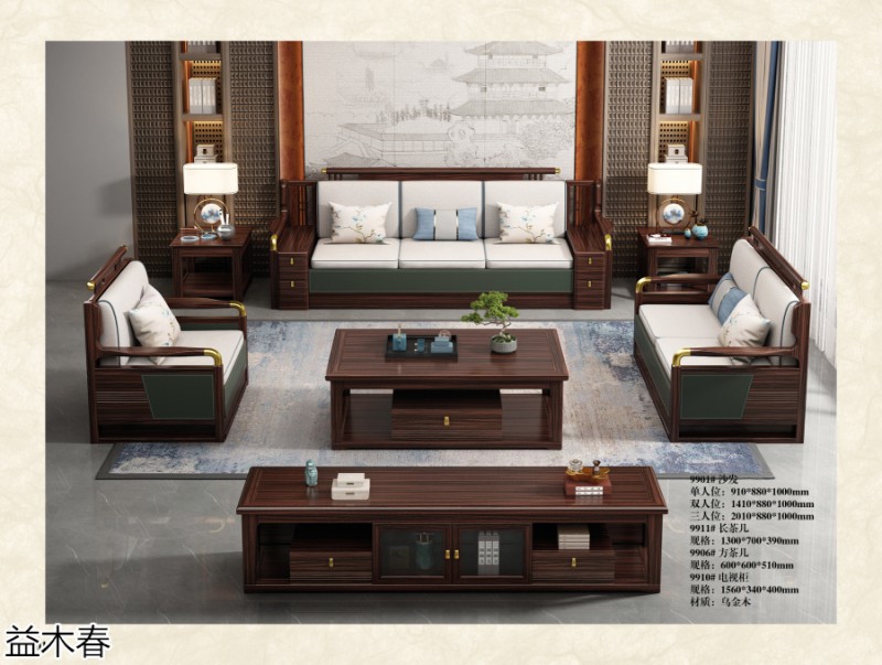 新中式、现代古典中式家具,南康乌金木、鸡翅木、紫金梨木、虎斑木沙发、电视柜、间厅柜,实木套房家具品牌招商,江西益木春家具生产厂家