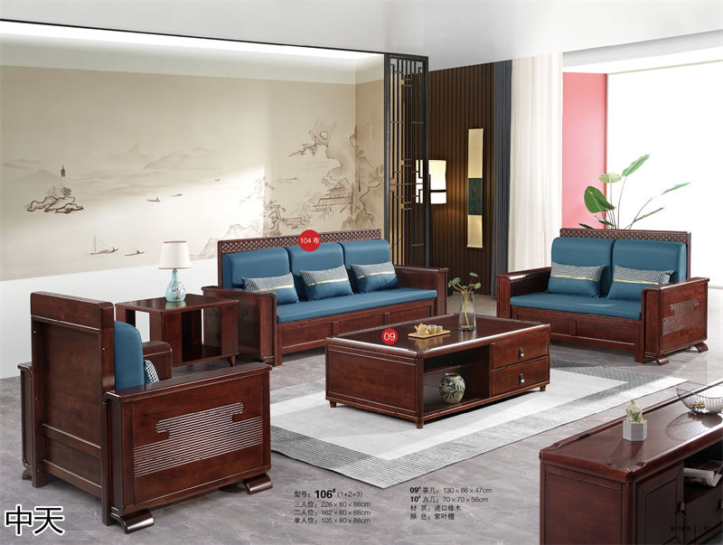 工程单沙发,南康实木沙发,紫叶檀、金丝檀、橡胶木沙发,性价比沙发,实木电视柜、茶几、客厅家具,江西实木沙发床,中天家具生产厂家