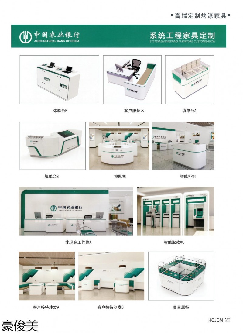 豪俊美专业生产烤漆前台、银行家具、医疗、控制台、国家电网、公安系统、保险公司、汽车4S店等高端异形系统艺术烤漆定制家具。