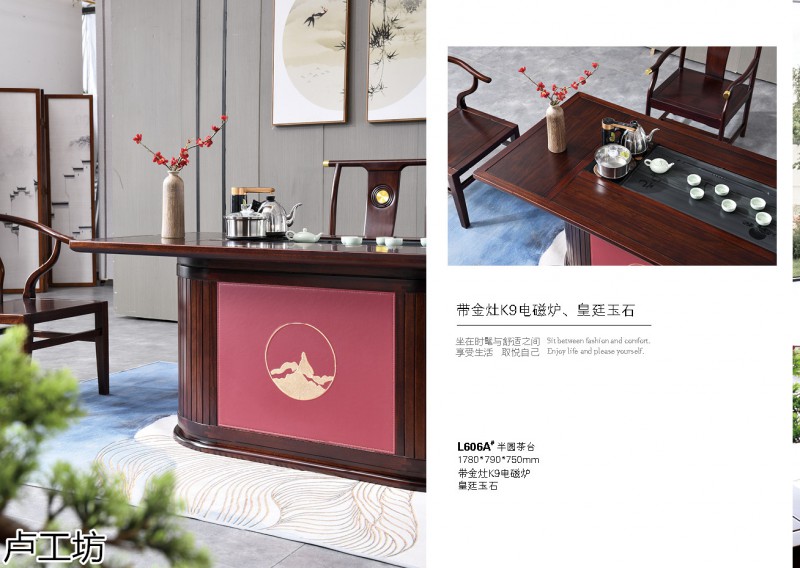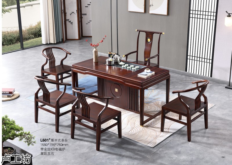 国潮中式茶空间家具,南康乌金木茶台,新中式风格实木茶台品牌招商,江西乌金木茶桌、茶水柜、大班台、博古架、餐桌,卢工坊家具生产厂家