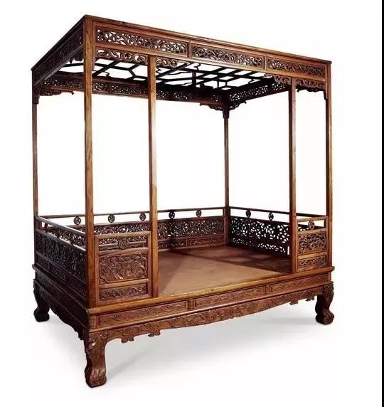 中式床常以紫檀、黄花梨、榉木、樟木等为原料,榫卯精密,坚固牢实,经典流传,价值不菲。