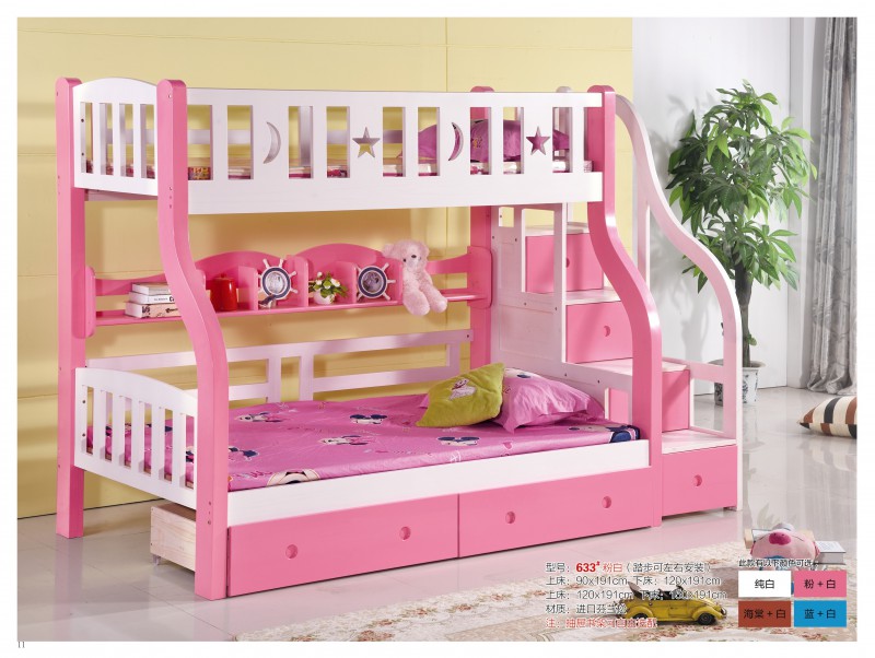 千宝家具儿童子母床633#粉白(踏步可左右安装)