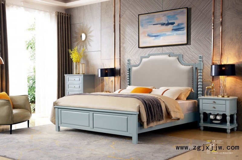 润潼新美式家具1901#大床(浅灰色)
