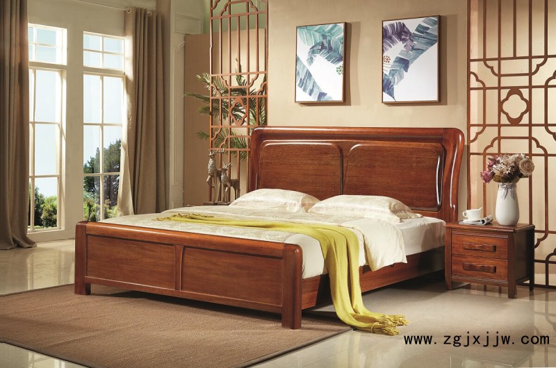卫府里新中式乌金木C616床软靠、CG606床头柜