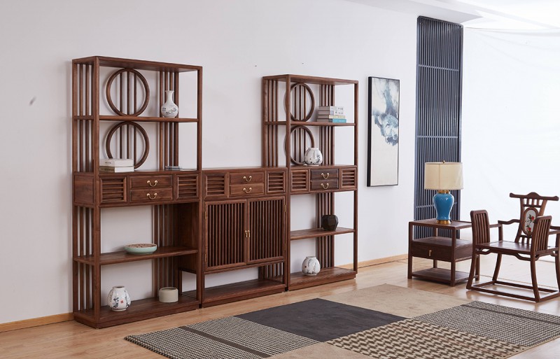 昌龙禾运新中式乌金木定制书柜