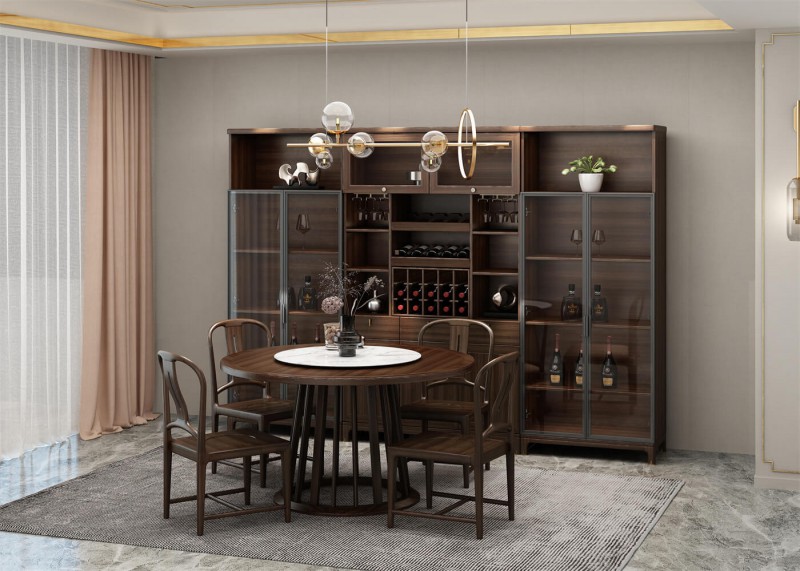 昌龙禾运新中式乌金木岩板圆桌1-505#、餐椅1-519#