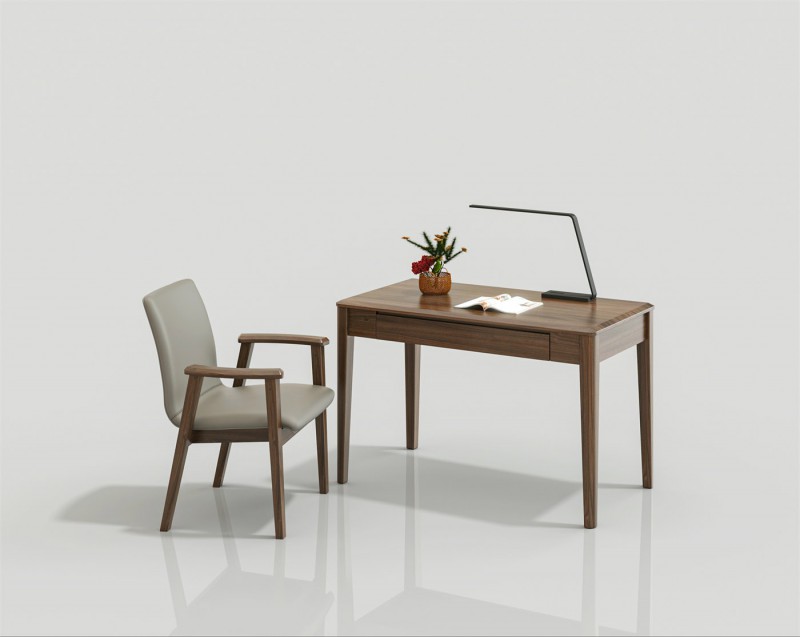 天伦雅乐现代极简南美黑胡桃木家具: ST101书桌、SY101书椅 皮