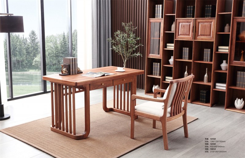 安德稳南美胡桃木木蜡油原木家具:书桌1010#、书椅1010#、书柜1001#