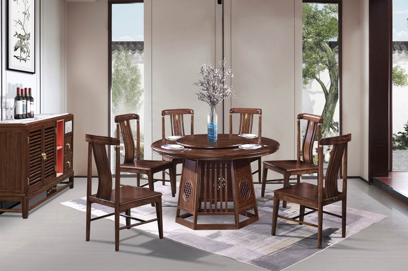 卫府里新中式乌金木CZ612圆桌、CY611餐椅