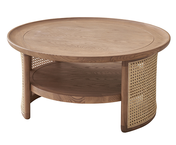 歌乐美北欧复古白蜡木S2020#藤艺圆几