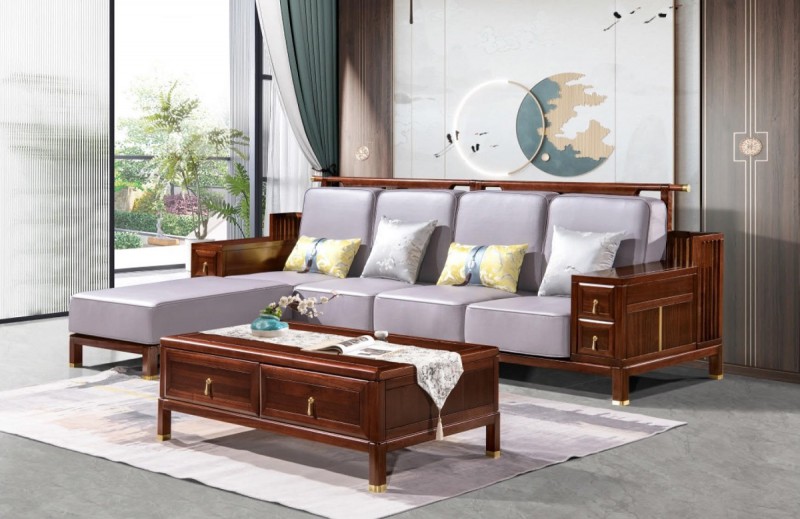 卫府里新中式乌金木SF609转角沙发、KT608茶几