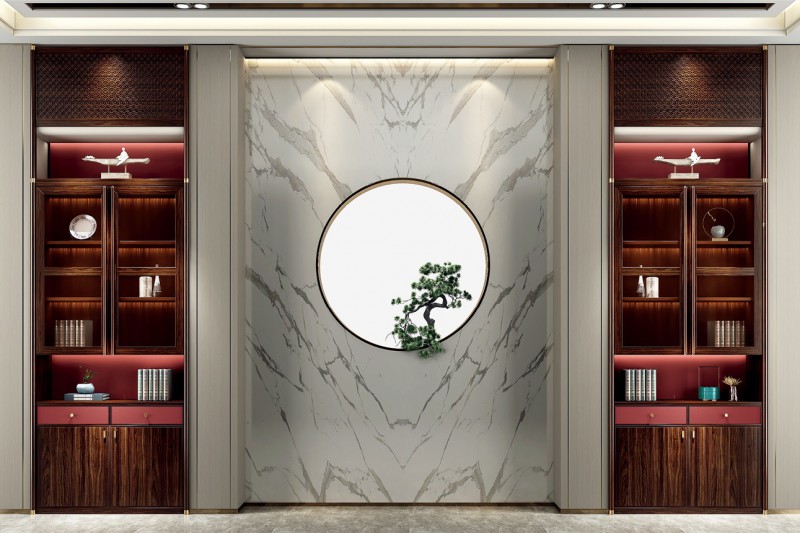 昌龙禾运新中式乌金木定制背景柜
