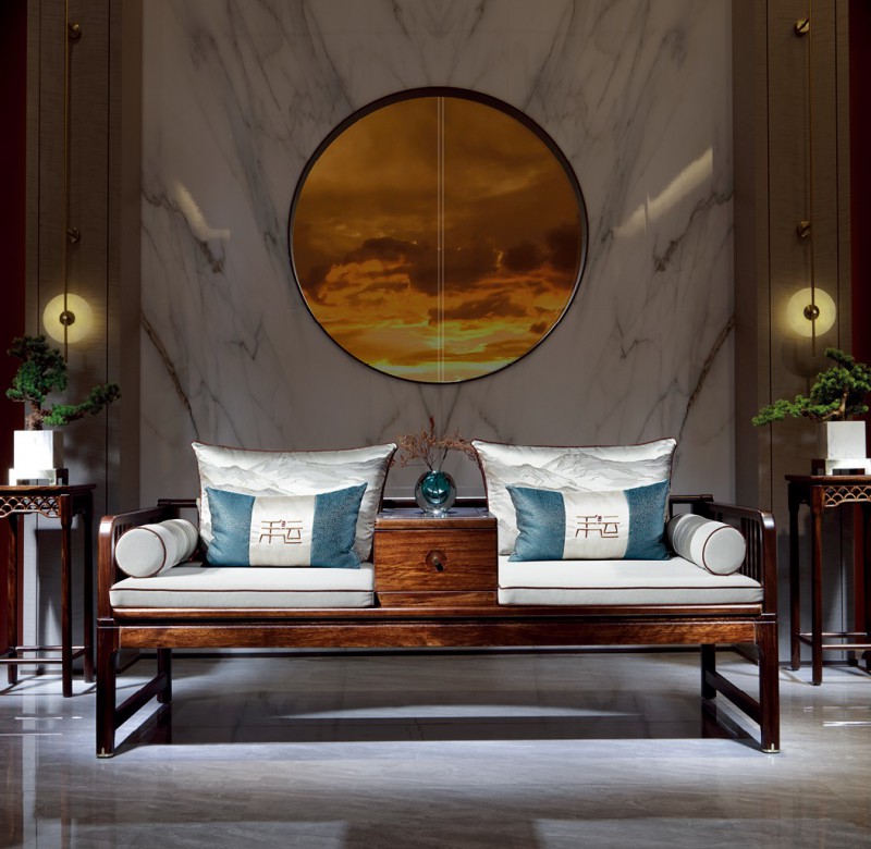 卫府里新中式乌金木SF609转角沙发、KT608茶几